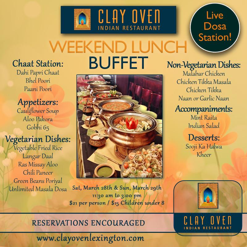 Our buffet selections change weekly and will feature a build your own Chaat Station, Unlimited Freshly Prepared Masala Dosa (lentil flour crepes) and a wide selection of vegetarian and non-vegetarian offerings from various regions of India. Please visit our website for weekly buffet menu updates or join our email list to stay up to date!*Pricing above is good for parties of up to 10 guests. For private events or any party of 10 guests or more, reservations are required. Special menus and pricing may be given based on the details of the party. Please contact us at (781) 674-2990, or complete a private event inquiry form. Pricing may vary based on holidays or circumstances and specifics of your event. Gratuity added for groups of 5 or more.